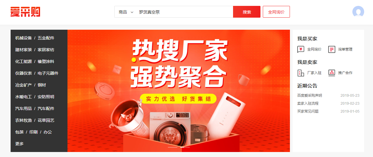 氣冷羅茨真空泵等產品入駐百度愛采購